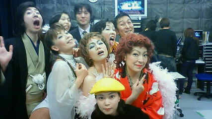 パフュームで踊るお茶子、アフリカンダンスで紙切り、腹話術、