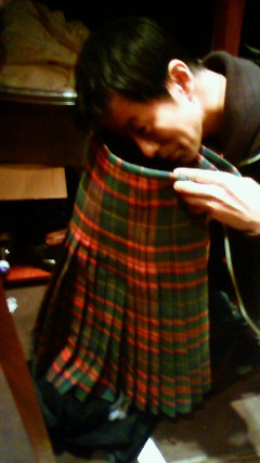 で、ふと楽屋を見ると、いつも彼がノーパンで履いてたキルトスカートが