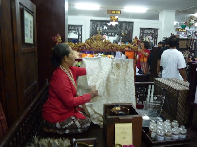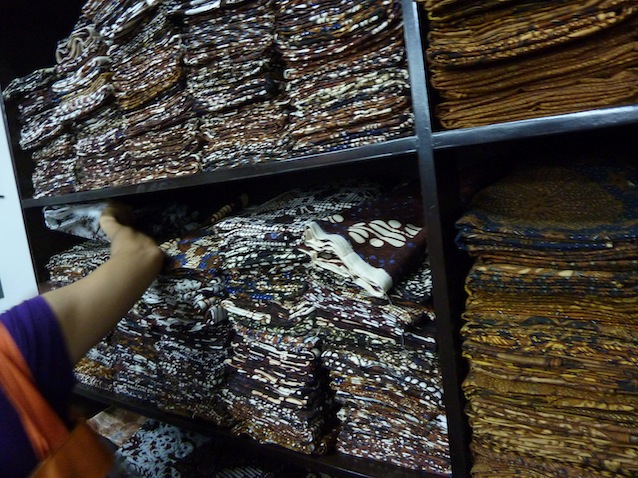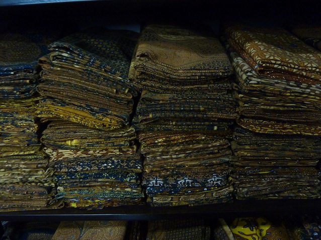同店内。バティックはロウケツ染めなので、