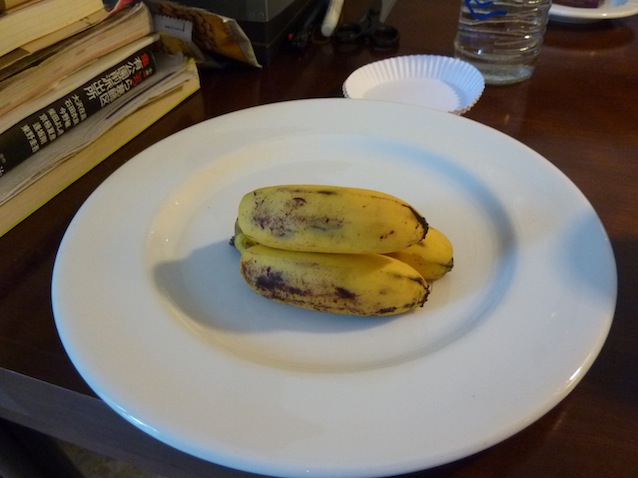 モンキーバナナ。すごく小ぶり。味はいいけど大きさは物足りないわ!爆