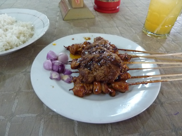 サテアヤム、焼き鳥。甘辛いピーナッツソースがかかっている。