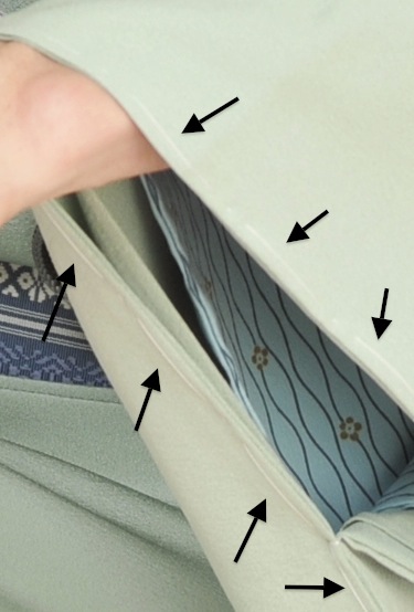 左の袖の仕付け糸が