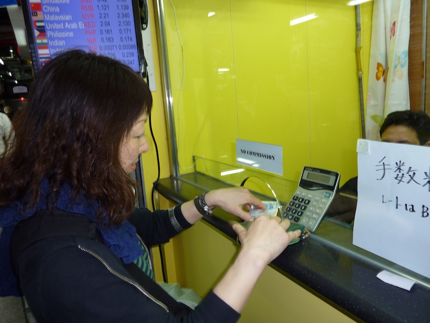 現場に望む前に、両替をする「シャッチョウさん」笑