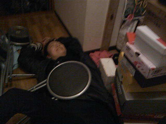 そばの椅子がガラガッチャンガッチャンと倒れてきた